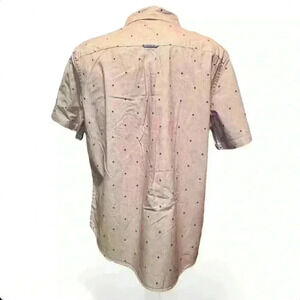 Keywords: Chaps, men's shirt, XL, pink, striped, button-up, casual, short sleeve, cotton, front chest pocket, button-down collar, collared, stars theme, pre-owned, like new.