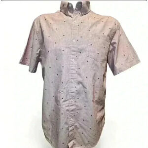 Keywords: Chaps, men's shirt, XL, pink, striped, button-up, casual, short sleeve, cotton, front chest pocket, button-down collar, collared, stars theme, pre-owned, like new.