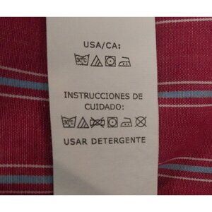 This Chaps shirt offers a timeless design with its classic red and white stripes. Crafted from a cotton-polyester blend, it ensures comfort and durability. Ideal for a professional setting, this shirt maintains a refined look with its button-down collar and chest pocket.
