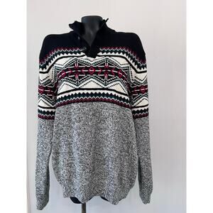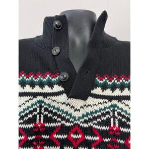Classic and timeless, this Chaps Men’s XL sweater features a Nordic Fair Isle pattern in black, red, and cream over a marled gray knit body. The shawl collar with two-button closure gives it a rugged yet refined look — ideal for winter weekends, ski trips, or casual holiday gatherings. Warm, soft, and easy to style with jeans or cords.
