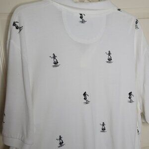 Chaps Men's XL White Hula Girl Short Sleeve Vneck 1/4 Button Cotton Polo Shirt