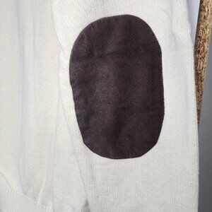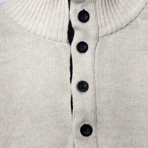 Chaps Men’s XXL Cotton Mock Neck Sweater Cream Elbow Patches Button Pullover