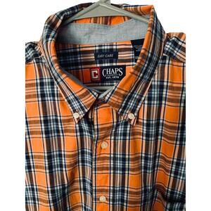 Chaps Men’s XXL Orange Navy Plaid Button-Down Shirt Short Sleeve Easy Care