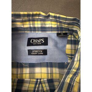 Chaps Mens Yellow & Blue Plaid Button-Down Shirt XXL Stretch Easy Care