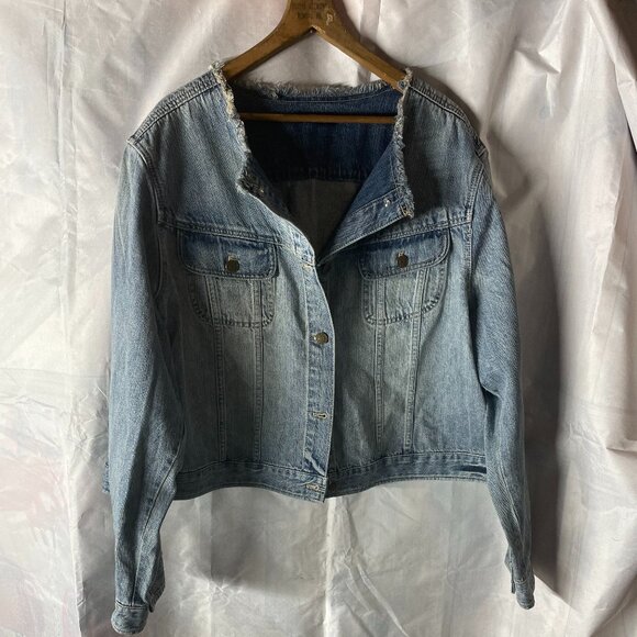 Chaps, Mens collarless Denim Jean Jacket, size L