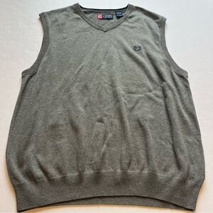 Chaps Men's Cotton Sweater Vest V-neck Gray with Navy blue logo Size XL