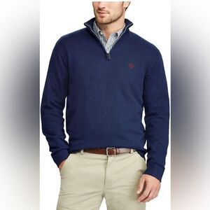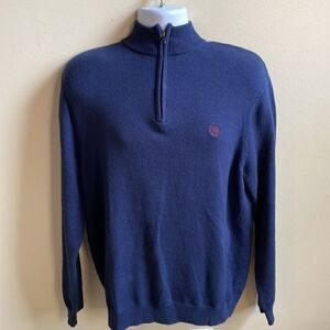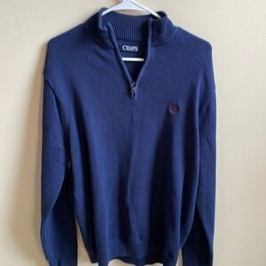 NAVY BLUE 1/4 zip pullover sweater(RN#41381, CA#56658) MENS SIZE MEDIUM, lightly used and in mint condition. Very light scratches on zipper but almost unnoticeable. Maroon chaps crest on left chest