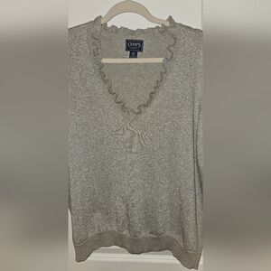 Chaps Metallic Gray Ruffle Knit Top