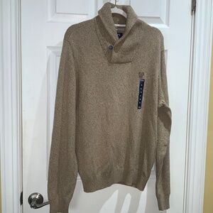 Chaps Midweight Cotton Pullover tan Sweater with Twist Shawl Collar Sz XLNew
