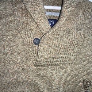 Chaps Midweight Cotton Pullover tan Sweater with Twist Shawl Collar