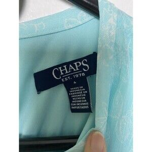 Chaps Mini Dress Aqua Turquoise Women's Size S-4 Chiffon front Bow Tie Sleeveless button closure loos fit relaxed keen length new with out tag excellent condition see pictures for more details and measurements