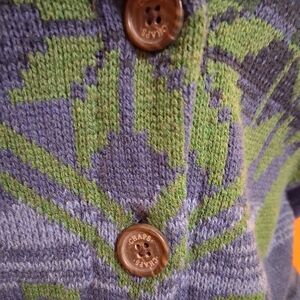 Stylish knit vest with a dynamic pattern. Features blue, red, and green hues. Ideal for a vibrant look.
