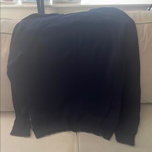 Stylish Chaps sweater with vibrant patterns. Features black sleeves and a colorful design. Perfect for cozy wear.