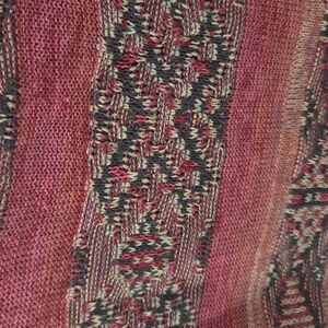 Chaps sweater with intricate patterns. Rich red tones. Ideal for casual wear.