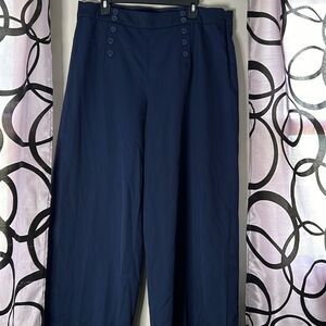 Chaps nautical, wide, legged pants with anchor button details, size 16, does have stretch zipper on the side made of a polyester viscose elastane blend