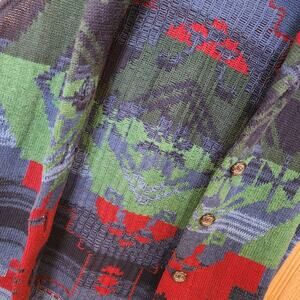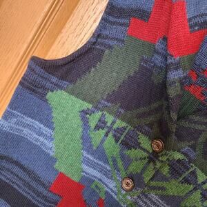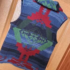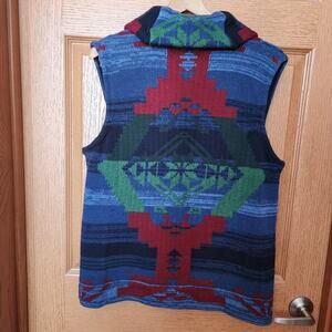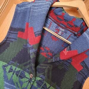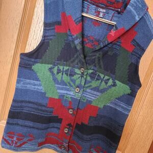 Chaps Navajo Southwestern Sweater Vest Women's Size XL Shawl Neck Button Blue