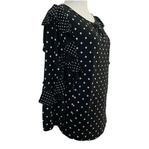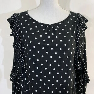 Chaps Navy And White Polka Dot Ruffle Sleeve Medium Blouse Cotton Blend Blue.