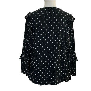 Chaps Navy And White Polka Dot Ruffle Sleeve Medium Blouse Cotton Blend Blue