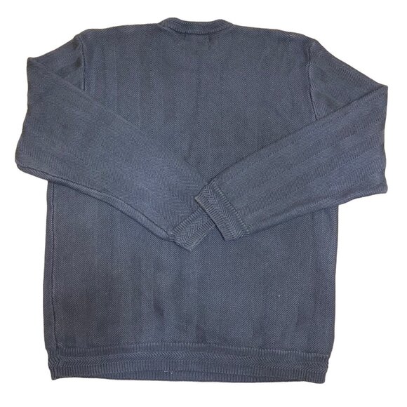 Chaps Navy Blue XL Cotton Sweater With Red Logo & Herringbone Pattern