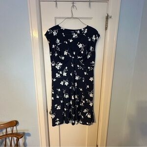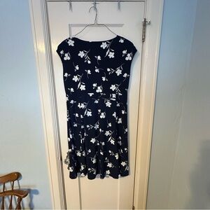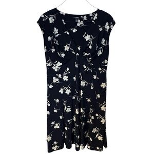 Chaps Navy & Cream Dress Babydoll Mermaid Fit & Flare Floral Sleeveless Size 16W
