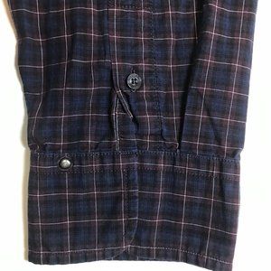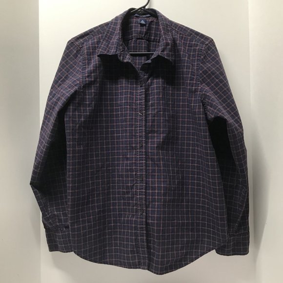 Chaps Navy / Maroon / White Plaid Long Sleeve Button Down Shirt
