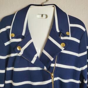 Chaps Navy Striped Zip Jacket Gold Button Nautical Blazer Style Women’s L