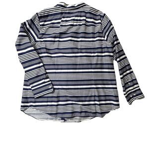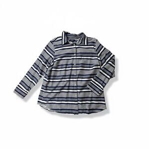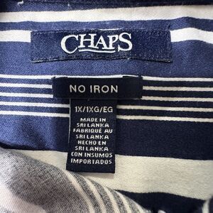 Chaps No Iron Shirt Womens 1X Navy Blue White Stripe Button Up Plus Size Pretty