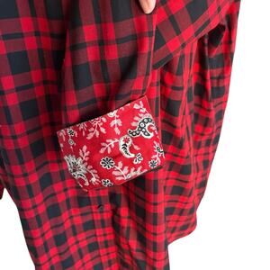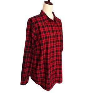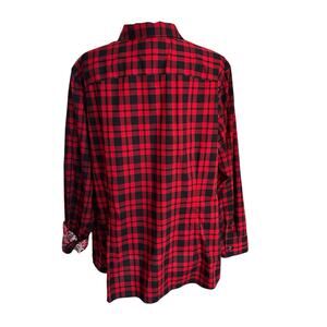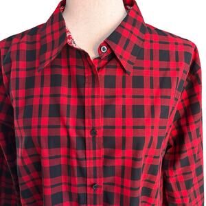 Chaps No Iron Shirt Womens Plus Size 2X Red Black Plaid Tunic Button Upn EUC