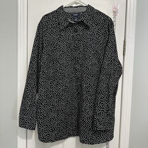 Chaps No Iron Womens Black Polka Dot Shirt Top Blouse 3x Classic Dots Preppy