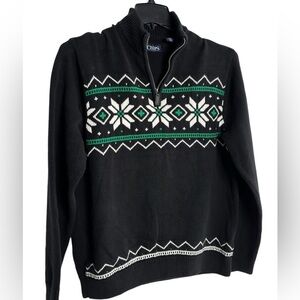 Chaps Nordic 1/4 Zip Mock Neck Sweater Men’s Large Black 100% Cotton Snowflake Ski Winter Holiday