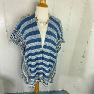 Chaps OS blue southwest BOHO style open cardigan