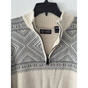 Chaps Men Oatmeal 1/4 Zip Pullover Sweater Sagamore Western Aztec Dad XXL Cotton