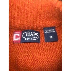 Chaps Orange Sweater Big Elbow Patch Button Casual Men's Size Medium 100% Cotton