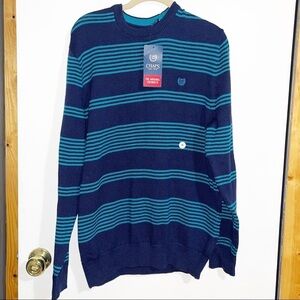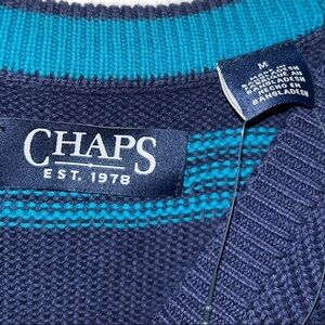 Chaps Original Crewneck Sweater. Men’s size medium, new with tags. Navy blue with stripes. 100% Cotton