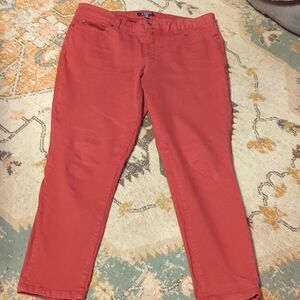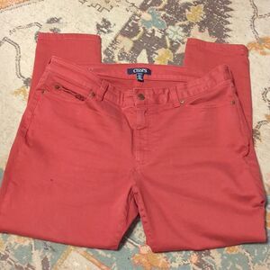 Chaps Pants Womens 14 Red Jeans Capri Mid Waist Tapered Leg Zip Fly Cotton Blend