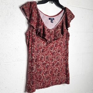 Chaps Patterned Ruffle-Neck Top