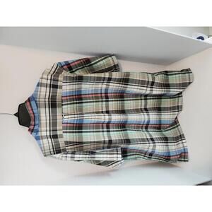 Step out in style with this eye-catching Chaps Performance short sleeve plaid shirt. Made for comfort and designed with functionality in mind, this shirt features a vibrant plaid pattern incorporating shades of black, blue, green, and coral. Perfect for casual outings or relaxed work days, it combines casual charm with a tailored fit. Key features include: - Performance fabric for breathability - Classic button-down design - Large size (XL) for extra comfort - Machine washable for easy care - Versatile look for any occasion.