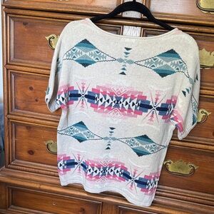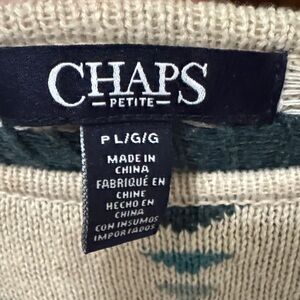 Elegant knit sweater by Chaps. Features teal and cream design. Ideal for casual outings.
