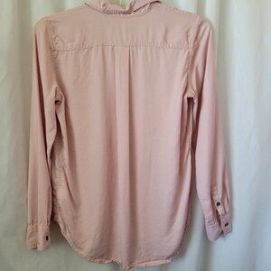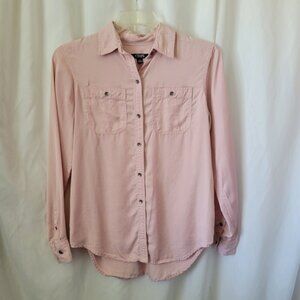 Chaps Pink Blouse Medium Button Front long sleeves Lyocell pockets Flowy EUC