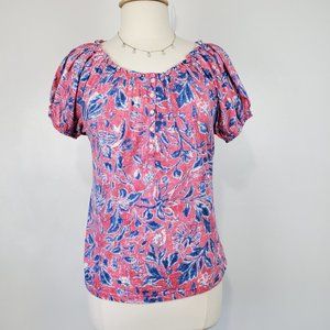 Chaps Pink Blue Cotton Short Sleeve Casual Spring Summer Knit Top