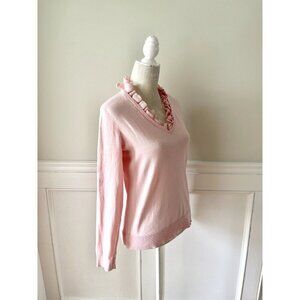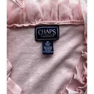 Soft pink sweater by Chaps with delicate ruffle detail at neckline