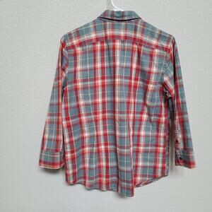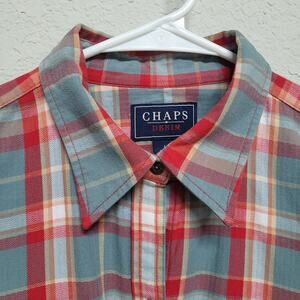 Chaps Plaid Button Up Shirt Womens L Red Blue Cotton Casual Western Fall Winter