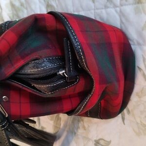 Beautiful red, black and green plaid Chaps purse. Perfect for everyday use. Zippo g center pocket and snap pockets on the side. I love it! In new condition.