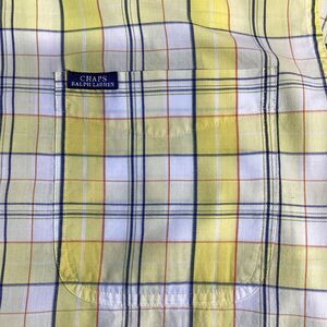 Keywords: Chaps, Plaid Shirt, Short Sleeve, Button Down, Casual Shirt, Menswear, Yellow Shirt, Summer Shirt, Classic Fit, Chest Pocket, Cotton Shirt