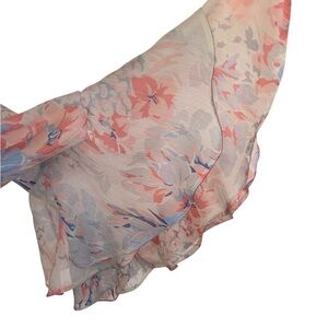 Chaps Plus Size Floral Pattern Flutter Ruffle Sleeves Boho Blouse PNK/WHT SZ 3X