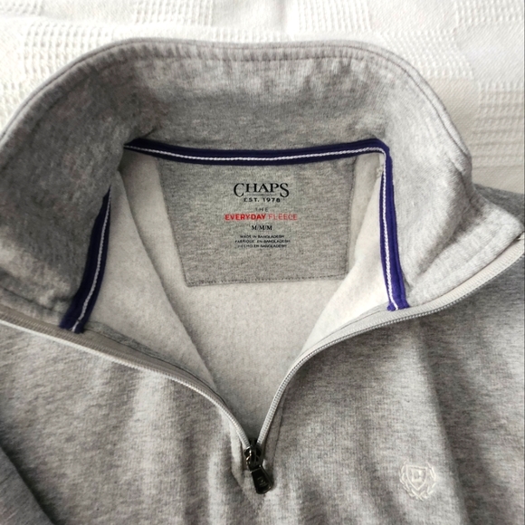 Chaps quarter zip pullover with front pockets. Gray in color. Men's size Medium. Washed once, never worn.