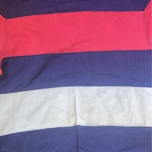 Chaps Pullover Fleece Mens Size XXL Pink Blue White Striped Comfy 1/4 Zip