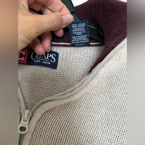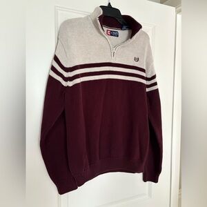 Chaps Pullover Sweater Men's XL maroon beige striped rugby Preppy School College