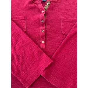Chaps Pullover Top 1X Red Three Quarter Sleeve Round Neck Quarter Button Front