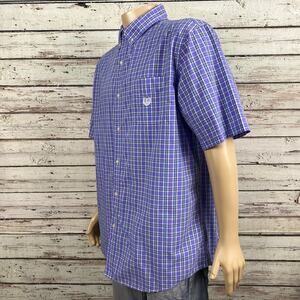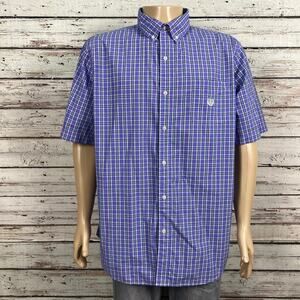 Chaps Purple Blue Plaid Button Front Shirt XXL Short Sleeve Collard